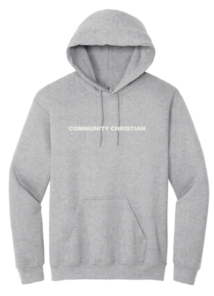 Jerzees hooded sweatshirt in athletic heather. Available in youth sizes small - x-large and adult sizes small - 4x-large.