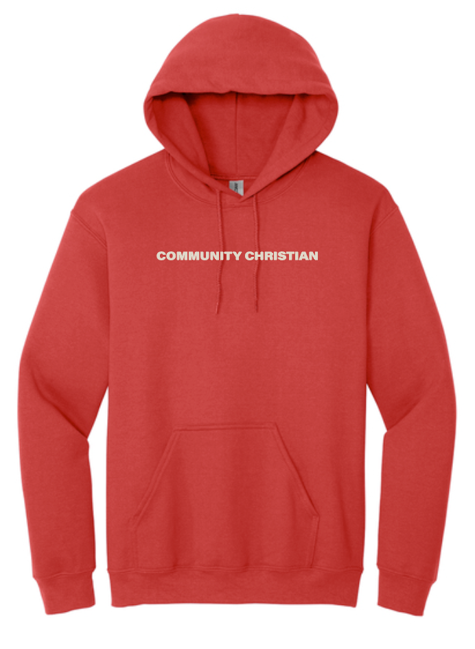 Jerzees hooded sweatshirt in red. Available in youth sizes small - x-large and adult sizes small - 4x-large.