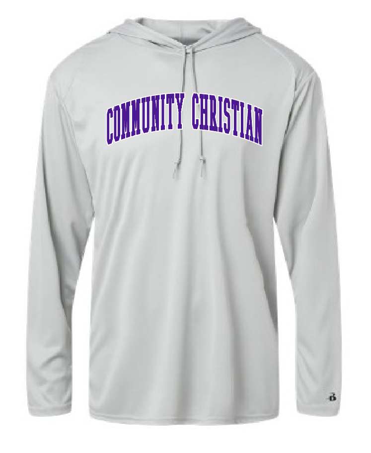 Fan Gear (6470) Badger L/S Hooded Moisture Wicking T-shirt (silver)