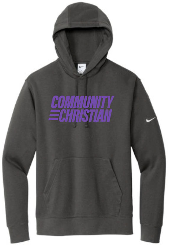 Nike Club fleece hooded sweatshirt in anthracite. Available in adult sizes x-small - 4x-large.
