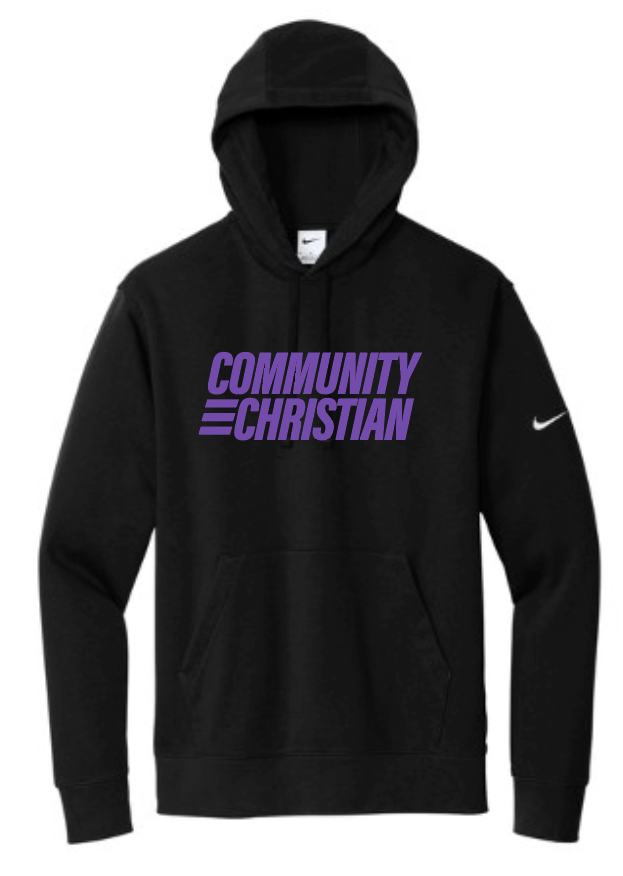Nike Club fleece hooded sweatshirt in black. Available in adult sizes x-small - 4x-large.