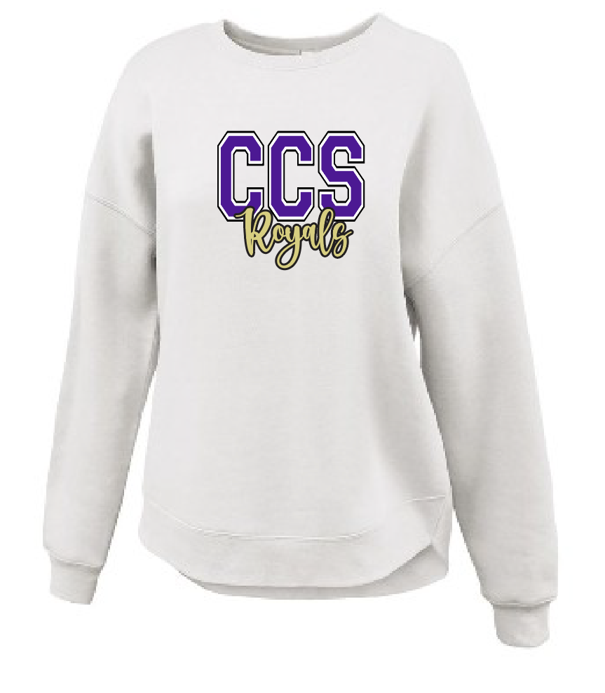 Pennant Sportswear curve bottom crewneck fleece in white. Available in women sizes x-small - 2x-large.