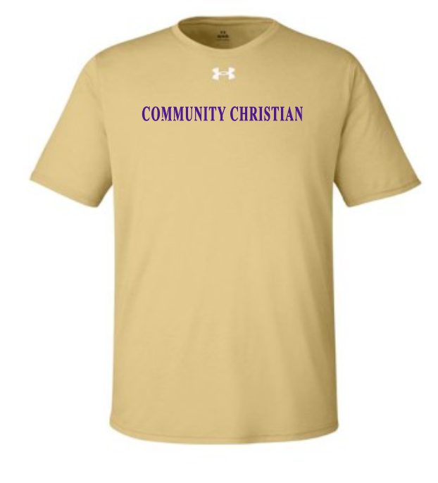 Under Armour unisex team tech short sleeve t-shirt in team vegas gold. Available in adult sizes small - 4x-large.